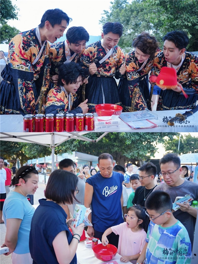 游客在“古镇闯关夺金”中穿梭街巷解锁历史故事;在大明雅乐与武侠金曲中感受梅花港的海丝印记;在闽剧功夫、变脸喷火、傩舞等绝活中传承非遗文化;为还原最地道的渔家风味,连续6晚的“梅花乡宴”特别邀请福州市长乐区餐饮烹饪行业协会会长、梅花乡厨洪正儿亲自掌勺,让游客沉浸式感受梅花美食文化;此外活动特别邀请中国书法家协会会员刘美寿现场挥毫“梅好中国心”,将传统文化与家国情怀融入笔墨;10月6日月满中秋夜,设置“全天博饼”活动,让闽地中秋习俗成为游客参与的热门项目;值得一提的是,活动特别邀请福州网红三婶婆与外国友人胡安漫步古镇,用福州话交流非遗技艺、品尝鱼丸,让“长乐丫霸!梅花古镇丫吼!”的乡音传遍现场,既拉近游客与民俗的距离,又让乡土风情成为乡村文旅的加分项……这些创新设计让“梅好心情”IP成功破圈,让文化不再是静态陈列,而是可参与、可感知的鲜活体验,丰富的活动内容不仅让梅花古镇相关话题曝光量超5000万次,更让梅花镇的海防文化、海丝文化成为乡村文旅的独特标识,“文化出圈”带动“乡村出名”。