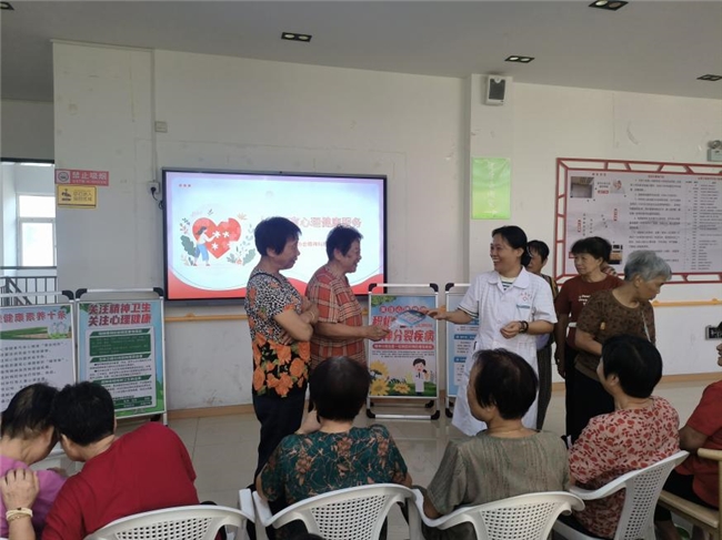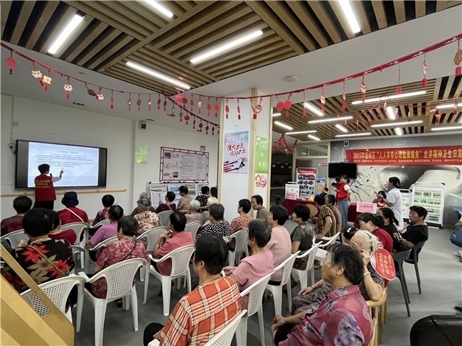活动特邀莆田市慈康医院心理科主任、副主任医师姚奇青开展心理健康知识讲座,聚焦“抑郁症与焦虑症的科学预防”。姚主任结合临床案例,分析常见诱因,详解早期识别方法并分享规律作息、社交互动释压、借助社区心理服务等预防策略,强调“预防大于治疗,主动关注心理状态是健康管理重点”。社工通过互动问答进一步补充,如“精神疾病规范治疗与康复效果”“老年人长期失眠情绪低落应对方法”“全国心理援助热线”等,以简洁解答强化群众认知、明确求助渠道。