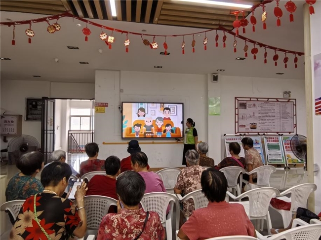 随后,播放《常见心理问题预防与健康管理》科普视频,内容涵盖青少年学业压力缓解、职场人士倦怠调节、居民情绪管理、老年记忆维护等板块,通过生活化场景演示心理问题的早期信号、日常预防技巧及家庭支持方法,为不同年龄段居民提供可操作的健康管理思路。