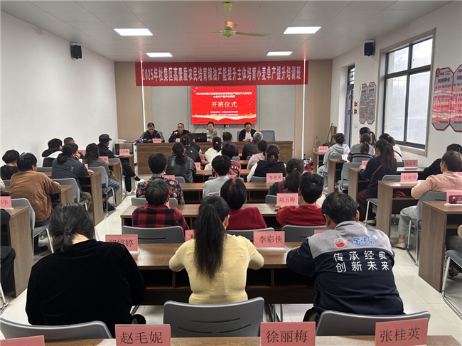 近日,由淮北市杜集区农业农村水利局主办、淮北市新育才职业培训学校承办的“2025年杜集区高素质农民培育粮油产能提升主体培育小麦单产提升培训班”,在杜集区朔里镇朔北社区开班,旨在提升农民小麦种植技术与农业生产效益。